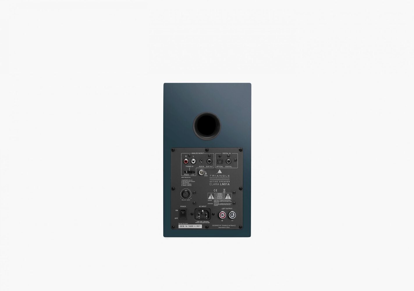 Модель оснащена Bluetooth-модулем, который поддерживает работу с аудиокодеком aptX, позволяющим получить близкое к CD качество звучания. Интересной особенностью Triangle ELARA LN01A является наличие на борту MM-фонокорректора, благодаря которому к АС можно подключать полноценный виниловый проигрыватель, оснащенный головкой звукоснимателя с подвижным магнитом. При необходимости вход фонокорректора «превращается» в обычный линейный вход с помощью ползункового переключателя на задней панели колонки. Там же имеется 3,5 мм входной разъем Aux для портативной аудиотехники, два S/PDIF-входа (оптический/коаксиальный) и выход для сабвуфера, с помощью которого можно организовать «трифоник» и усилить басовую секцию системы. Имеется универсальный энкодер, позволяющий регулировать уровень громкости (при повороте) и выбирать требуемый вход (при нажатии), а для подключения левой АС служит пара винтовых клемм.