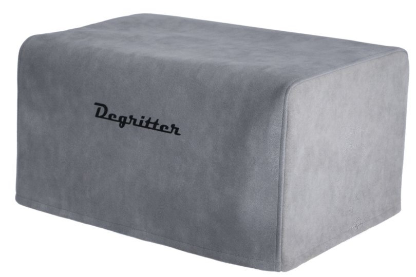 Degritter Dust Cover - это специальный пылезащитный чехол из алькантары точного кроя, с магнитной застежкой и наружными карманами для моющей машинки Degritter Record Cleaning Machine MKII.