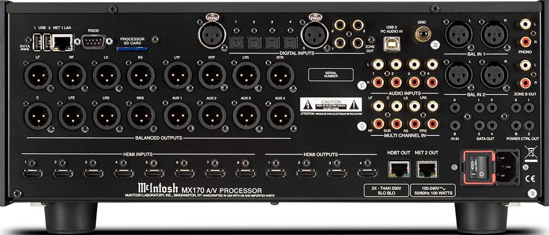 Для создания впечатляющего эффекта домашнего кинотеатра Макинтош MX170 оснащен симметричными выходами для конфигурации громкоговорителя объемного звука 15,1. Это позволяет вам иметь в своем домашнем кинотеатре множество динамиков для создания захватывающей кинематографической звуковой сцены. Если у вас не так много громкоговорителей объемного звучания, 4 из выходов можно использовать для двухполосного усиления некоторых ваших громкоговорителей или для управления дополнительными сабвуферами.