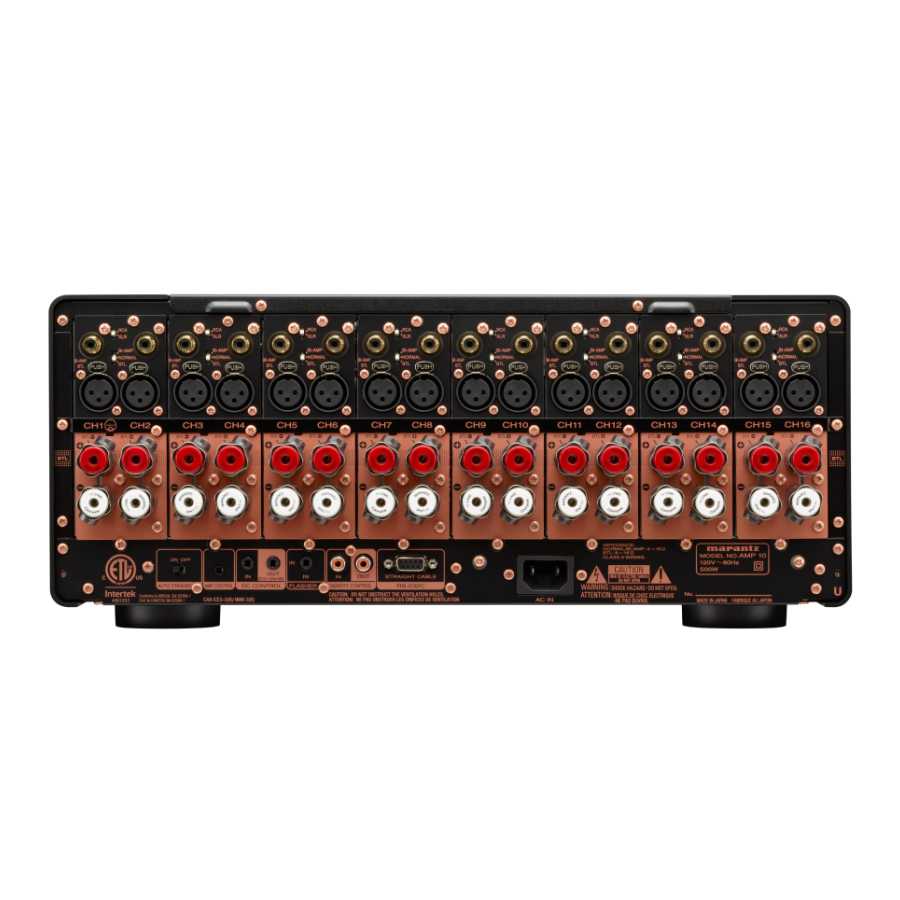 Оснащён 16 каналами усиления с использованием модулей усиления класса D собственной разработки Marantz и обеспечивает выдающуюся мощность и точность. Продуманная архитектура и независимые блоки питания обеспечивают стабильную работу даже в сложных инсталляциях. Каждому каналу уделено внимание на уровне отдельных компонентов, включая медные шины заземления, тороидальный трансформатор и аудиофильские конденсаторы.