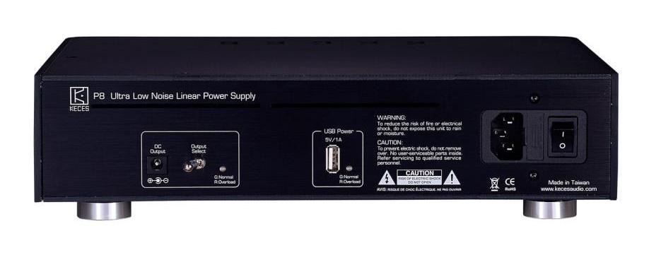 Keces P8 - это высококачественный регулируемый линейный источник питания, который обеспечит вашу аудиосистему высокой верности чистым электрическим сигналом. Блок питания имеет аккуратную конструкцию с высококачественным тороидальным трансформатором и отдельной землей. Такая внутренняя конструкция обеспечивает сверхнизкий уровень шума сигнала и устраняет все "гулы" при частоте 50 Гц и полной нагрузке. В блоке питания также предусмотрена защита от перегрева при превышении максимальной температуры. Все компоненты помещены в прочный и привлекательный корпус из черного матового алюминия. Логотип бренда впечатан в алюминий на крышке блока питания. Экран на передней панели отображает напряжение и подаваемый ток. Если Keces P8 так интересен, то это потому, что он имеет выход с регулируемым напряжением. Переключатель позволяет выбрать выходное напряжение постоянного тока. P8 также имеет USB-разъем, обеспечивающий питание 5 В постоянного тока 1 А. Входное напряжение также можно выбрать 230 В или 115 В переменного тока, благодаря переключателю на нижней части устройства