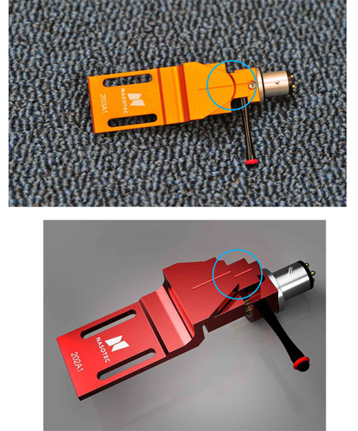 Top: Standard headshell / Bottom: Nasotec Swing headshell