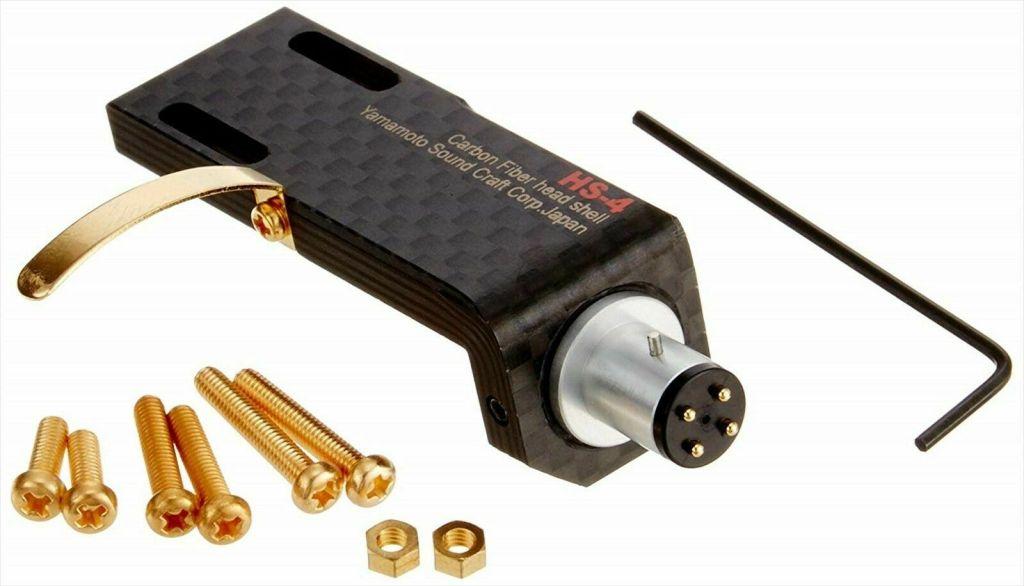Удельный вес составляет около 1/5, а также вдвое большая жесткость чем у стали. Имеет отличные показатели устойчивости к резонансам. Углеродное волокно было отлито в форму HS-4 размером до 5 мм, поддерживалась высокая интенсивность, и была сделана головная оболочка. Углеродное волокно является высокотвердым материалом и по этой причине труднообрабатываемым, что влечёт за собой высокую стоимость изготовления изделий. Нашей компании удалось снизить затраты на изготовление HS-4 в полной мере используя обрабатывающий станок с ЧПУ. HS-4 поставляется с позолоченной латунной фурнитурой. Вы можете увеличить общую массу с помощью более длинных винтов, чтобы точно настроить резонансную частоту корпуса головки и картриджа. Эти крепежные детали немагнитны.