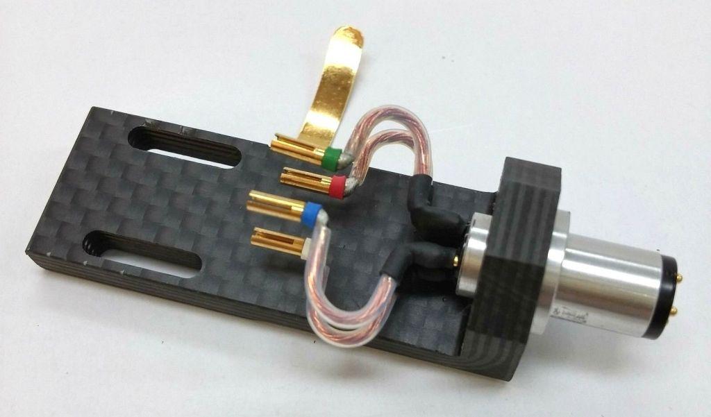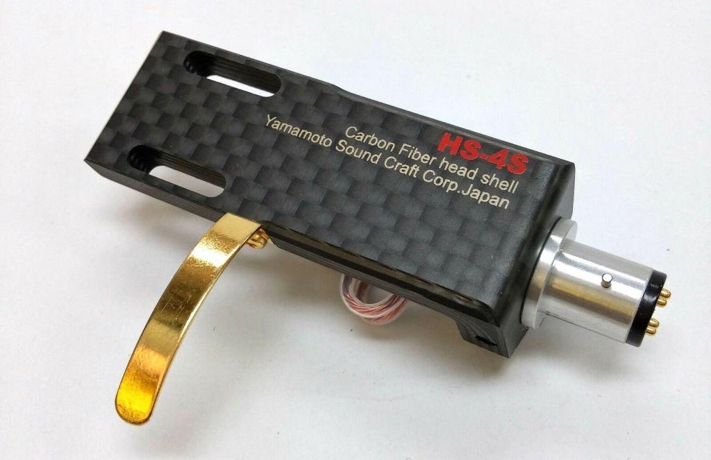 Удельный вес составляет около 1/5, а также вдвое большая жесткость чем у стали. Имеет отличные показатели устойчивости к резонансам. Углеродное волокно было отлито в форму HS-4S размером до 5 мм, поддерживалась высокая интенсивность, и была сделана головная оболочка. Углеродное волокно является высокотвердым материалом и по этой причине труднообрабатываемым, что влечёт за собой высокую стоимость изготовления изделий. Нашей компании удалось снизить затраты на изготовление HS-4S в полной мере используя обрабатывающий станок с ЧПУ. HS-4S поставляется с позолоченной латунной фурнитурой. Вы можете увеличить общую массу с помощью более длинных винтов, чтобы точно настроить резонансную частоту корпуса головки и картриджа. Эти крепежные детали немагнитны.