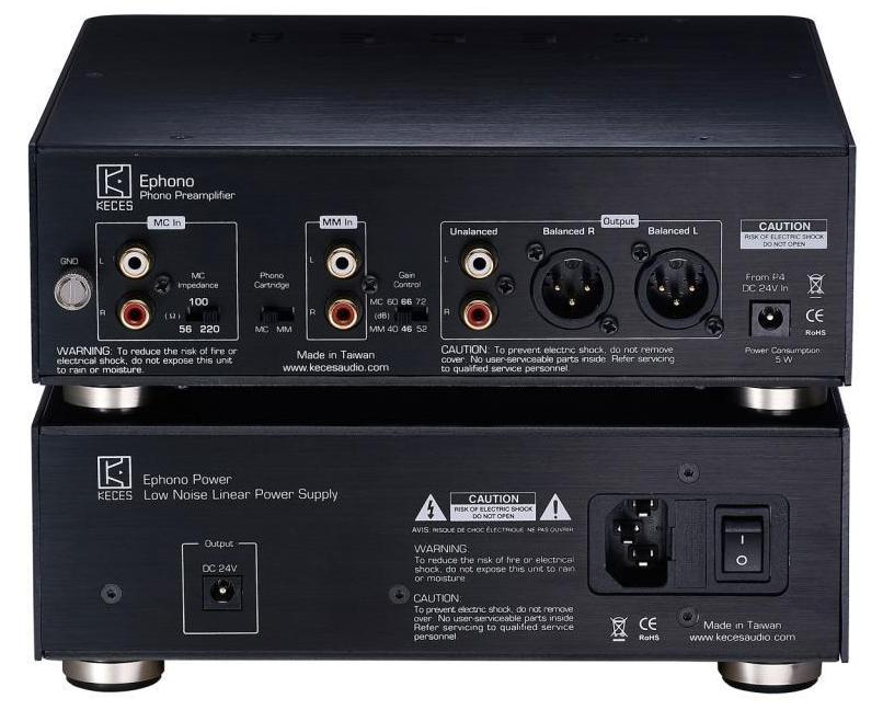 Фонокорректор MM/MC Keces Ephono с внешним источником питания. Keces Ephono обеспечивает очень ровное воспроизведение с его насыщенными низкими и чистыми высокими частотами. Доступны два выхода, как разъемы RCA, так и симметричные выходы XLR. Для обеспечения безупречного энергоснабжения в стандартную комплектацию Keces входит внешний линейный источник питания Keces Ephono Power, который обеспечивает чрезвычайно стабильное энергоснабжение. Внешний блок питания Keces с тороидальным трансформатором большого размера, сложной системой стабилизации напряжения и полудюжиной Elkos для устранения остатков переменного напряжения обеспечивает функцию, которая превосходит современные импульсные источники питания по безотказности и долговечности.
