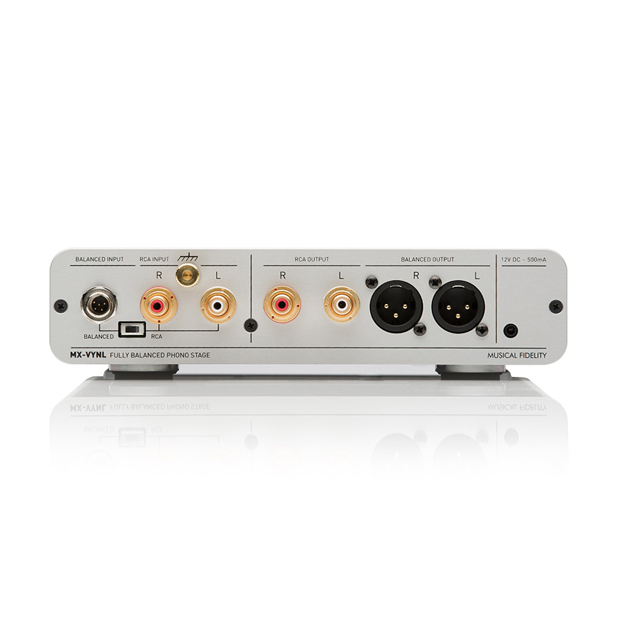Аппарат построен по балансной схеме, которая обеспечивает наилучшее соотношение сигнал/шум и динамичное звучание. Использование современной технологии поверхностного монтажа помогло инженерам существенно уменьшить расстояние между элементами и длину печатных проводников. Для подключения проигрывателей винила с балансным выходом предусмотрен 5-контактный разъем DIN, а снять балансный сигнал можно с двух XLR-разъемов. Предусмотрены и небалансные RCA входы и выходы – тип подключения выбирается с передней панели, при этом в случае установки балансного режима на фронтальной панели Musical Fidelity MX-VYNL загорается миниатюрный светодиод.
