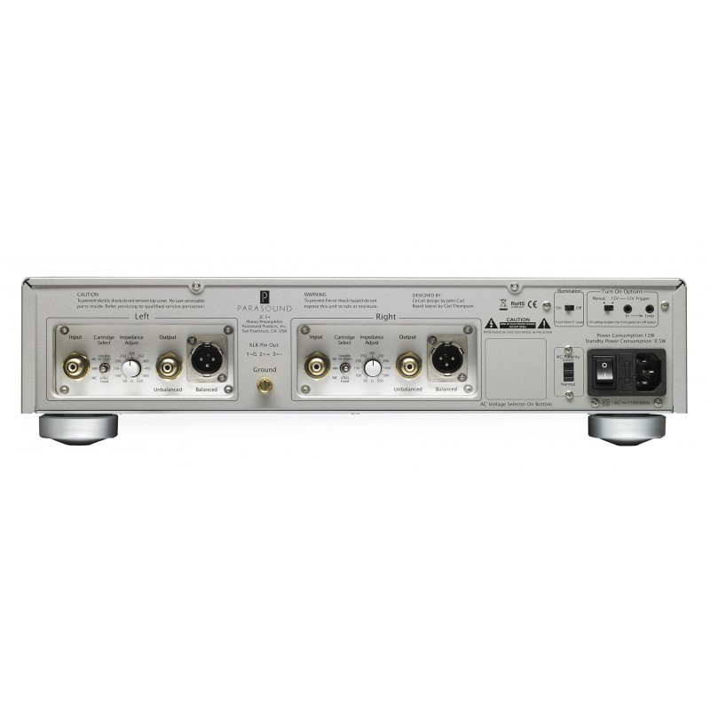 Фонокорректор снабжен переключателем моно/стерео для наиболее качественного воспроизведения винтажных записей. Также предусмотрен переключатель фазы сетевого напряжения, что в некоторых случаях позволит дополнительно снизить шумы. Parasound JC3 Plus оснащен триггерным выходом для управления другими совместимыми компонентами системы.