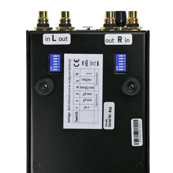 Lehmann Audio Black Cube Decade это первый фонокорректор компании, в котором предусмотрены такие функции как рокот-фильтр и переключение коэффициента усиления 36 или 66 дБ. Соответствующая коммутация производится с помощью переключателей на передней панели и управляемых ими высококачественных реле, смонтированных в соответствующих участках схемы для минимизации уровня шумов.
