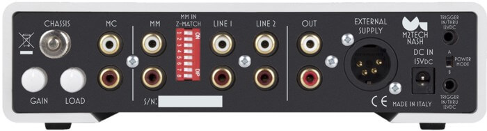 | phono MC (RCA) phono MM (RCA) 2 x line-level (RCA) external power supply (4-pin XLR) trigger (3.5mm jack) | |