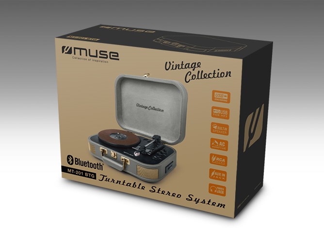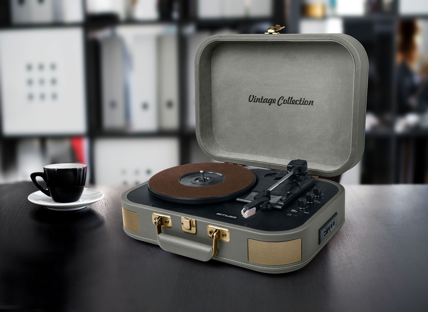 Muse MT-201 - это портативный проигрыватель виниловых дисков в ретро стиле.