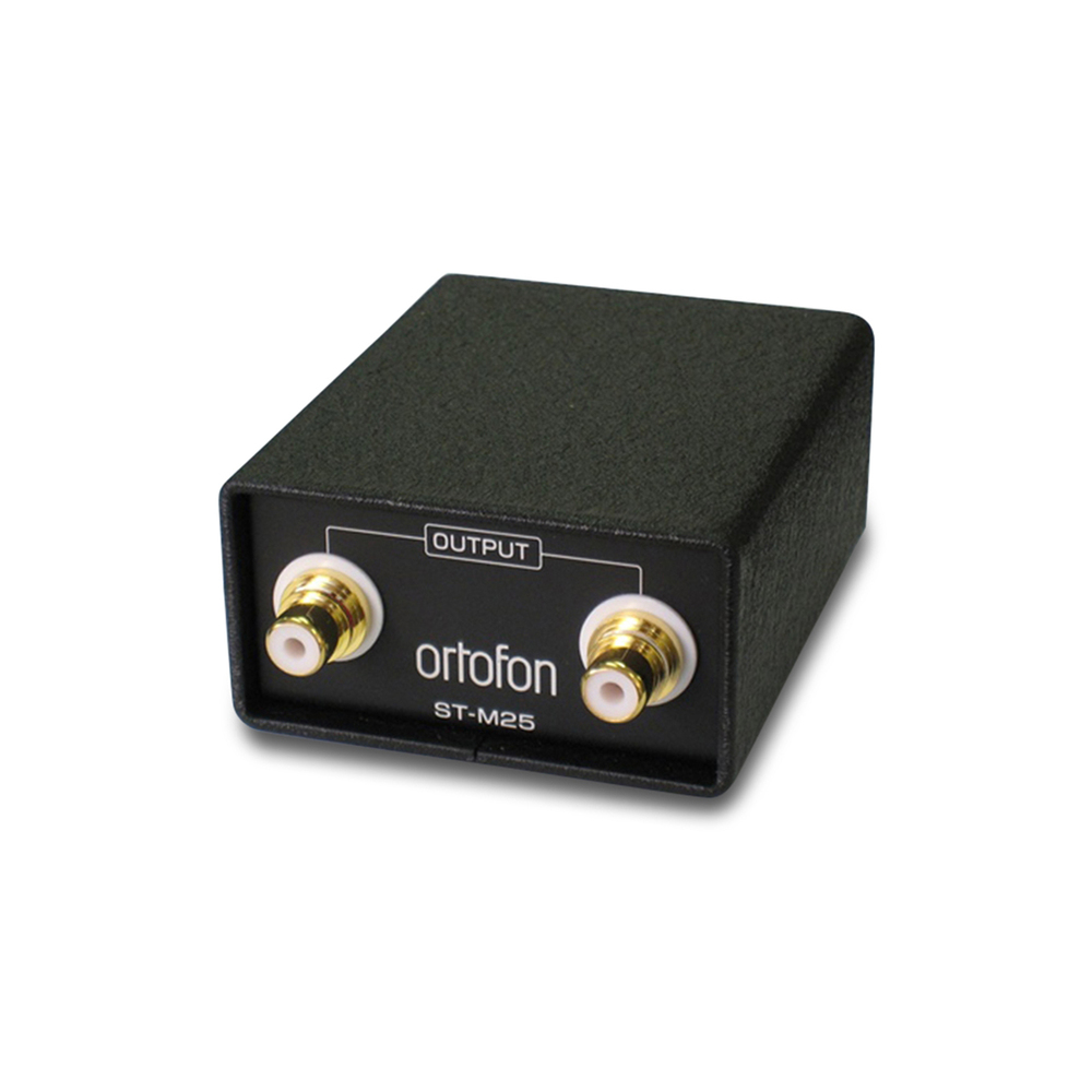Выходное напряжение звукоснимателей с подвижной катушкой (MC-тип) слишком низкое для подключения к входу MM-фонокорректора. Повышающий MC-трансформатор Ortofon ST-M25 MC обеспечивает усиление входного сигнала на 12 дБ и, таким образом, его уровень становится оптимальным для подачи на вход ММ-фонокорректора.