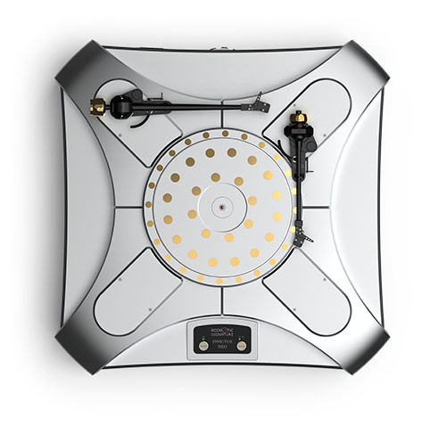 Теперь мы могли бы написать эссе о нашем Invictus NEO. Но в этом не было бы никакого смысла. Вы все равно нам не поверите, пока сами не услышите наш шедевр. Итак, давайте сделаем это коротко: куда бы вы ни посмотрели – акустическая подпись Invictus NEO - лучший проигрыватель в мире. Пятно. Проигрыватель винила Invictus Neo — это воплощение апгрейда поколения Neo. Шедевральный сверхмассивный Invictus предыдущего поколения приобрел новые достоинства благодаря «вечному и неубиваемому» подшипнику DTD, алмазной полировке оси диска, интегрированным в корпус 6 двигателям с системой синхронизации и подавления вибраций AVC третьего уровня. Интегрированные двигатели даже позволили сделать новый Invictus более компактным. Invictus в версии Neo остается верным девизу (invictus по латыни — непобедимый) и, как считают его создатели, с большим запасом выигрывает титул лучшего проигрывателя винила в мире. 6 двигателей в изолированных от вибраций отсеках. Опорный диск Invictus устанавливается на алюминиевый малый диск, на который собственно и передается вращение двумя ремнями (пассиками) привода. Каждый из ремней приводится в движение тремя двигателями, расположенными под углом 120° друг к другу, что делает движение пассика плавным, без рывков и убирает нагрузку на подшипник от привода. Два набора двигателей увеличивают этот эффект и, плюс к тому, дают достаточный крутящий момент, чтобы привести в движение 19-килограммовый опорный диск. Электронная система запуска при старте помогает двигателям раскрутить диск до номинальных оборотов за 10 секунд, а затем снижает мощность двигателей примерно на 70%, так полная мощность уже не нужна для стабильного вращения. Соответственно при воспроизведении двигатели работают в оптимальном режиме и не вибрируют. Трехточечная стабильная система опор использует новой конструкции ножки на магнитной подушке. Еще в 2000 году Acoustic Signature изобрела и внедрила новую систему гашения вибраций главного (на который кладется пластинка) диска проигрывателя. Система вставок действует просто и чрезвычайно эффективно. Известно, что паразитные вибрации приходят в диск разными путями и источники возникновения у них тоже разные. Даже сама игла звукоснимателя при движении по канавке вибрирует и ее «песня» прекрасно слышна, если приблизить ухо к вращающемуся винилу. Естественно, что вибрации иглы уходят не только в воздух, но и обратно в пластинку и дальше в опорный диск. Гуляющие взад вперед отражения полезного сигнала снова улавливаются иглой и вызывают характерную «фазовую мутность», незначительную, но грязную окраску звука. Если в комнате звучит музыка или просто происходят какие-то звуки, то второй путь проникновения вибраций в проигрыватель — воздушный. Воздушные волны возбуждают колебания в опорном диске, в самой пластинке и в шасси проигрывателя. Игла звукоснимателя по своей природе является датчиком вибраций и подмешивает в полезный электрический сигнал еще и эти паразитные колебания. Они замазывают микродетали, нюансы музицирования и нюансы акустической атмосферы записи. Расположенные в определенных секторах цилиндрические вставки эффективно разбивают путь паразитных вибраций, поглощая и рассеивая их энергию, которая теперь не доходит до звукоснимателя. Эффективность виброгасителей более 80 дБ! В опорном диске Invictus первая группа успокоителей кол