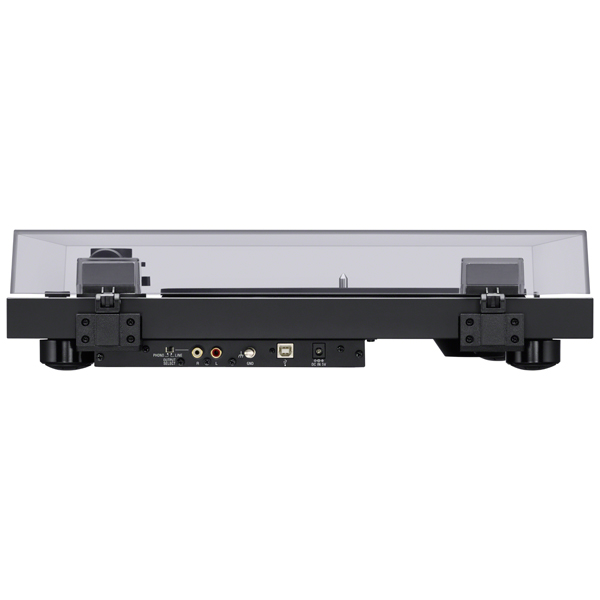 Встроенный усилитель с фонокорректором позволяет переключаться между линейным выходом и выходом звукоснимателя и воспроизводить аудио через интегрированный усилитель или внешний фонокорректор.