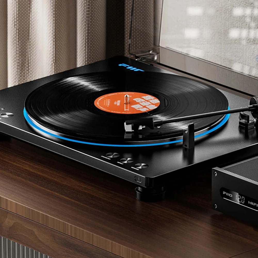 Fiio TT13 BT - отличный выбор для любителей винила, которые ценят качество звука и комфорт в использовании. Модель оборудована подсветкой с 7 цветовыми режимами, что разнообразит внешний вид устройства, также подсветку при желании можно полностью отключить. Кроме того, проигрыватель комплектуется инфракрасным пультом дистанционного управления.