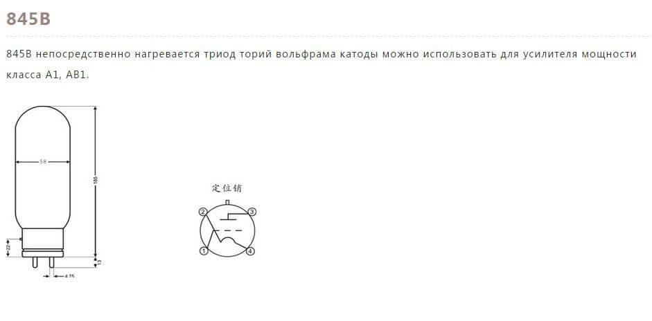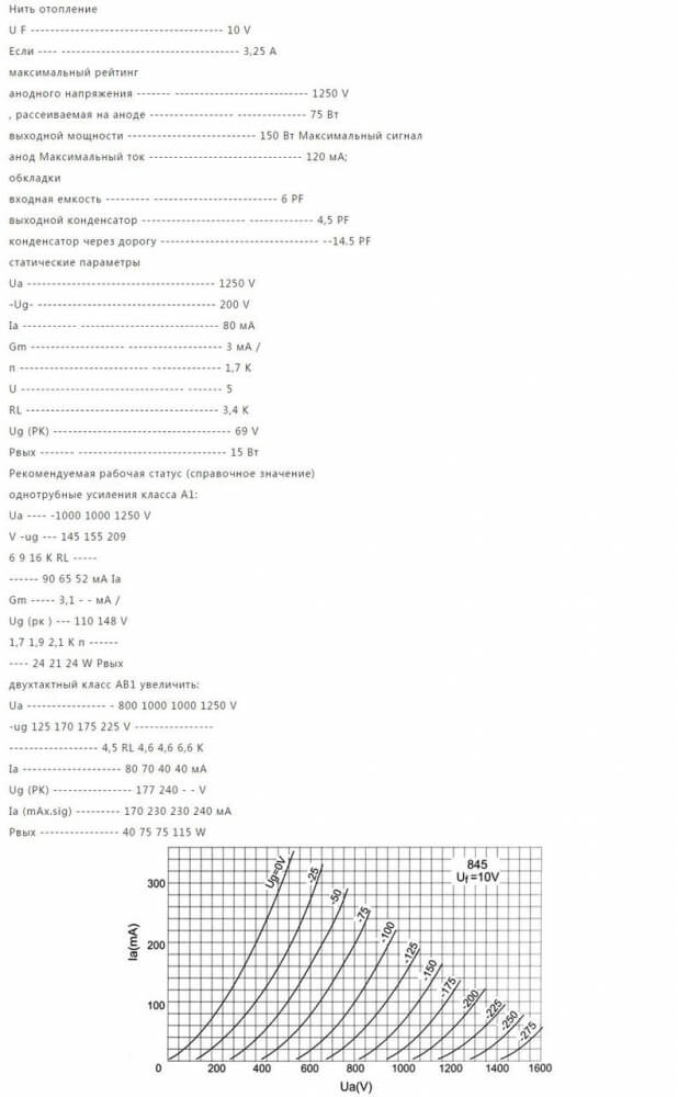 Одна из ламп - визитных карточек производителя. Входит в комплект усилителей Cary CAD 805, Aries 845-G monoblocks, Unison S8 и других. Характеризуются быстрым и чистым звучанием, с хорошим тональным балансом, плавность и детализацией звука. Лампа с торий-вольфрамовой нитью. Данный тип ламп выпускается с 1931 года, и имеет армию поклонников благодаря замечательным динамическим характеристикам и мощному басу, тем самым обеспечивая качество живого звука, которое многие считают неотразимым.